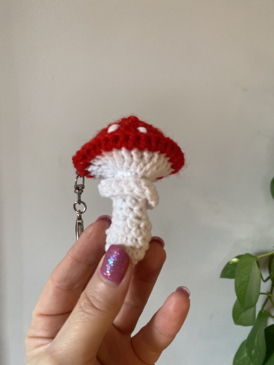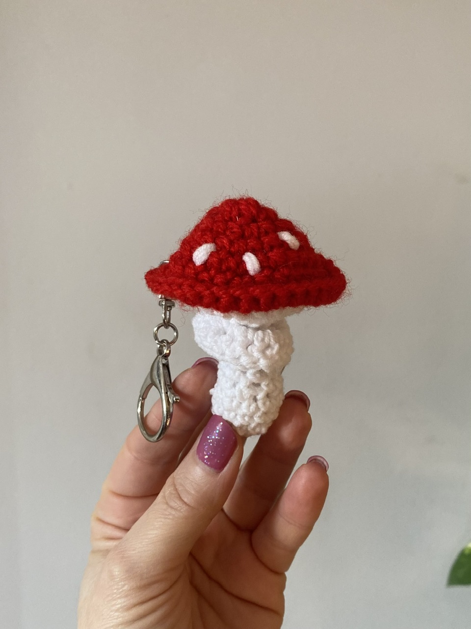 Uroczy brelok w kształcie muchomorka wykonany na szydełku. Lekki i wygodny w użyciu.